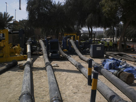 When a Civil Contractor damaged an active sewer main during some remedial civil works, Khansaheb Sykes were called in quickly to assist. Being the UAE’s No 1 Pump Rental Company,Khansaheb Sykes provided a fast, reliable and cost effective solution.