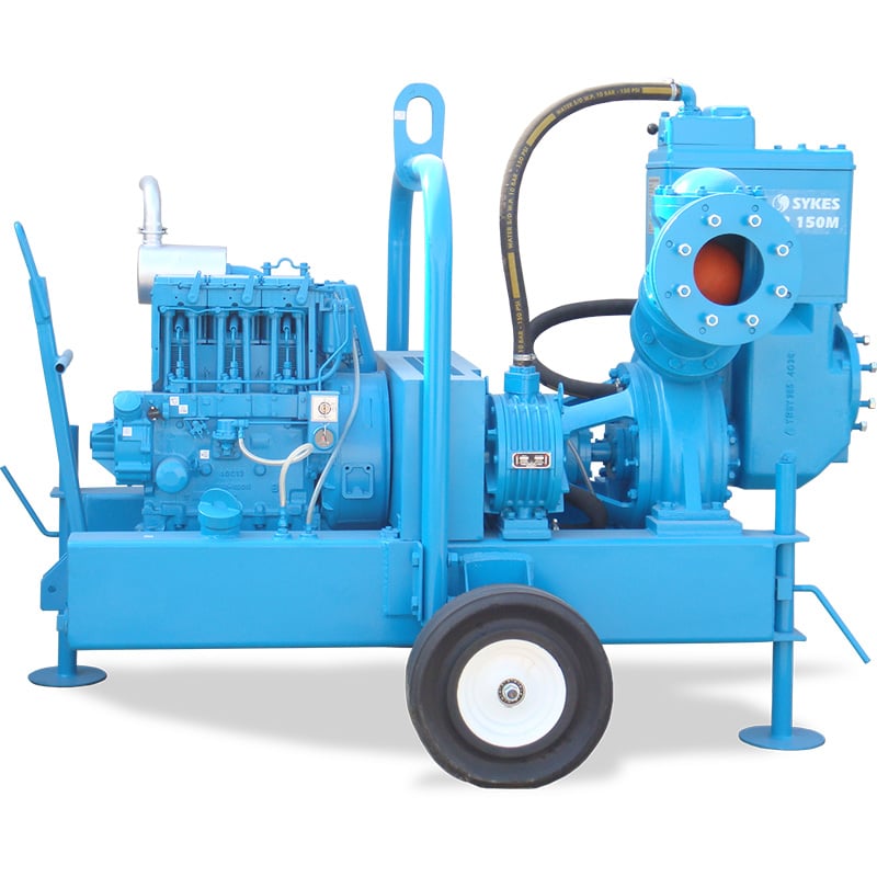 The GP 150M is the general purpose industry standard for Construction, Utilities and Civil Engineering. Used wherever there’s a need for positive self – priming, the GP 150M incorporates the unique Sykes Univac vacuum system. This enables the pump to prime and re-prime fully automatically from dry. The GP 150M, is powered by a 20kw Lister engine. All Sykes General Purpose pumps are available with alternative engines, motors and chassis configurations.